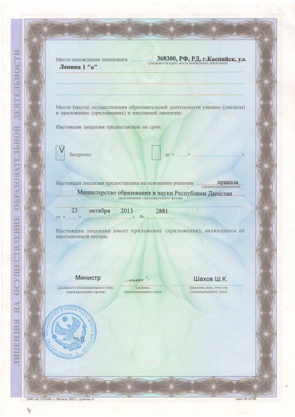 | Адрес местонахождения образовательной организации* | 368300 РД г. Каспийск ул. Ленина 1 а |